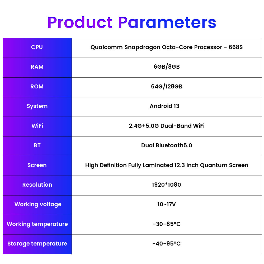 Bluetooth 5.0: Equipped with Bluetooth 5.0, it allows the co-driver's audio to be transmitted to the original car's sound system or connected to Bluetooth headphones, creating a private entertainment space for the co-driver.