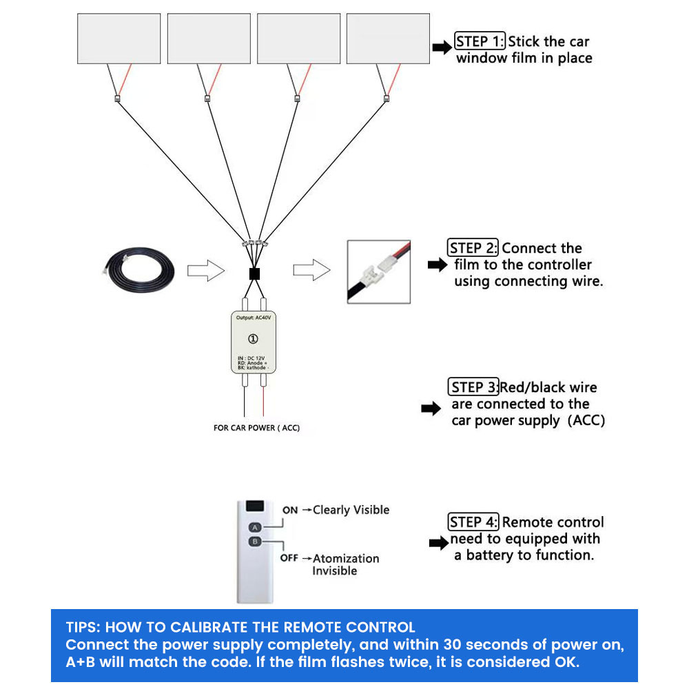 Note:Automotive PDLC smart film does not require water for installation. It uses a dry adhesive layer for easy application.Dimming Film Switchable Glass Film Water Resistant